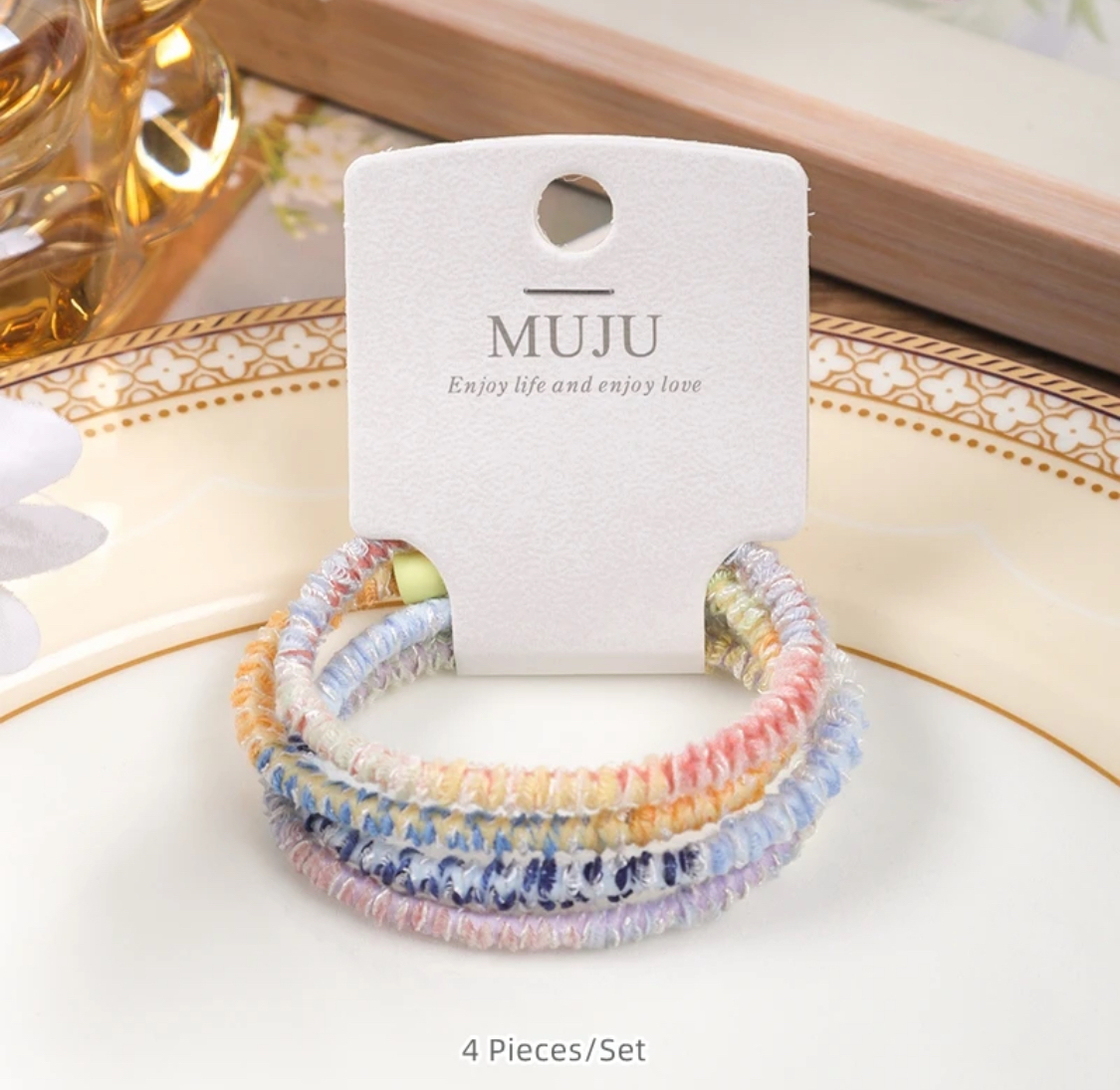 4Piece of Sweet rainbow gradient thread hair tie value 4 cardstock leather band high stretch plush