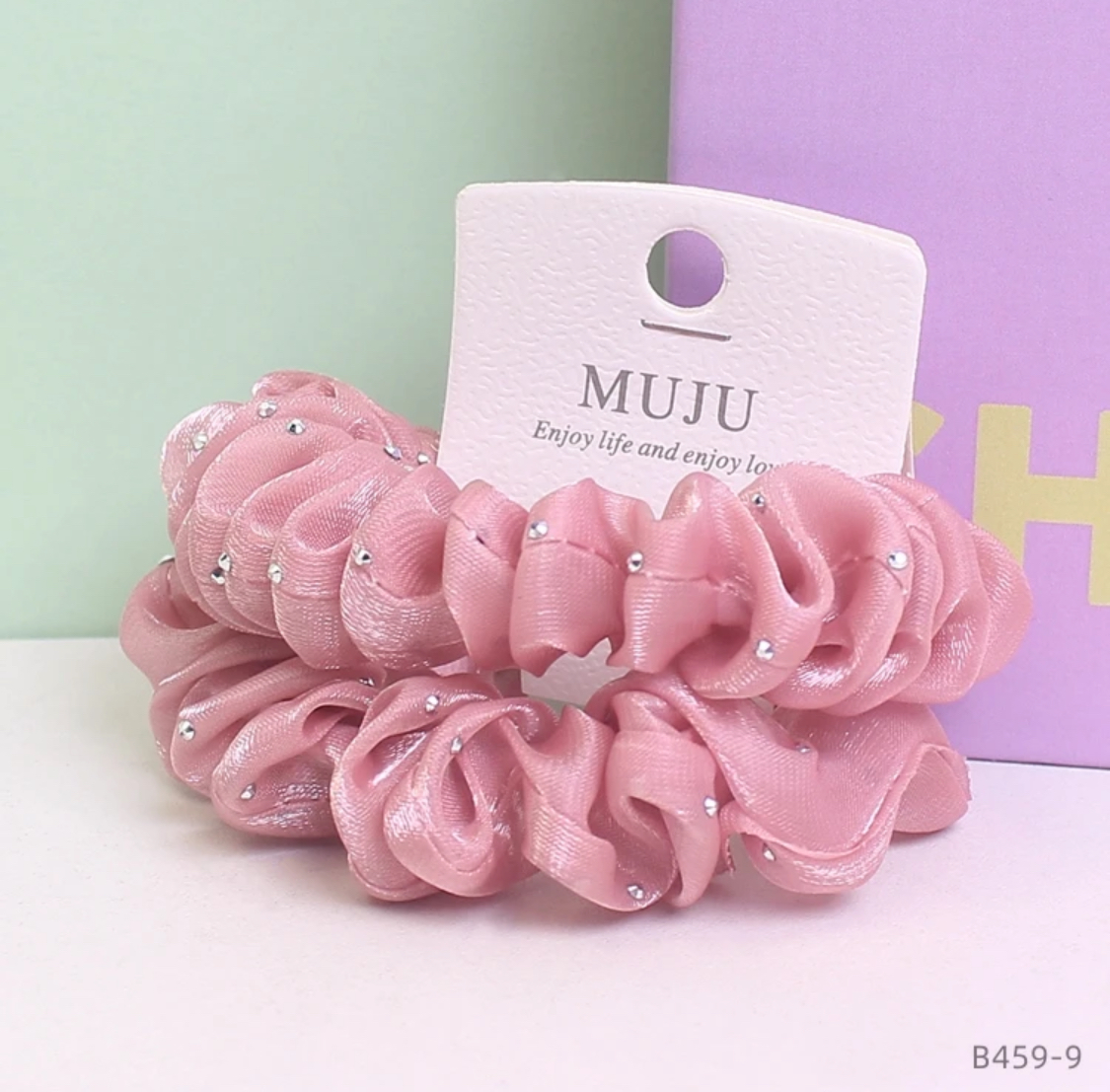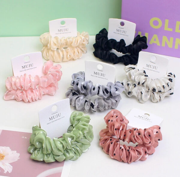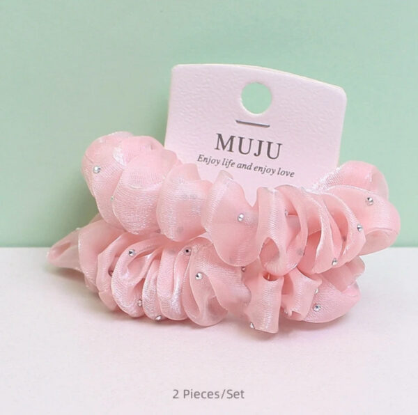 2 Piece of Hot drill mesh scrunchie women’s middle size high elastic Hair Scrunchies solid color Hair Ties For Girls